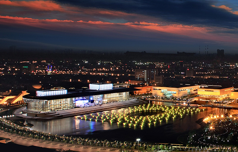 2.12000t鋼結(jié)構(gòu)屋蓋,為雙向正交桁架體系,由不規(guī)則分布的18個核心筒109個支座支撐,采用高空就位安裝難;