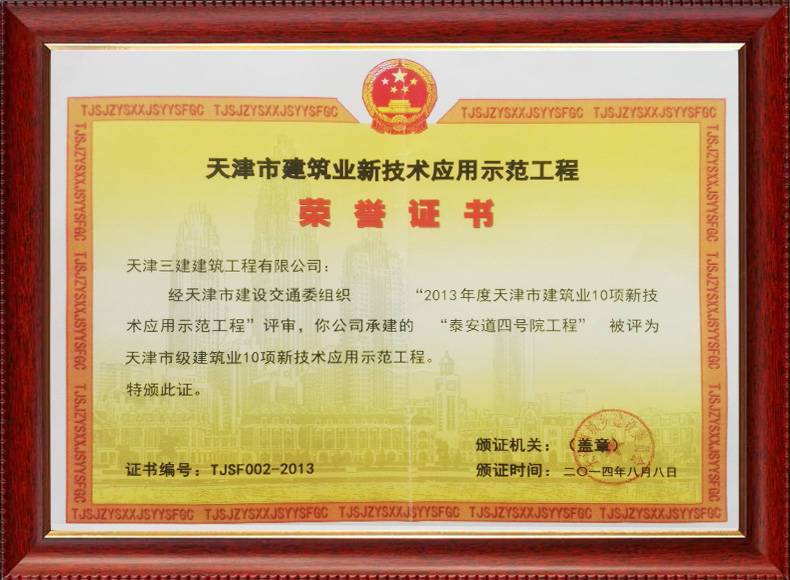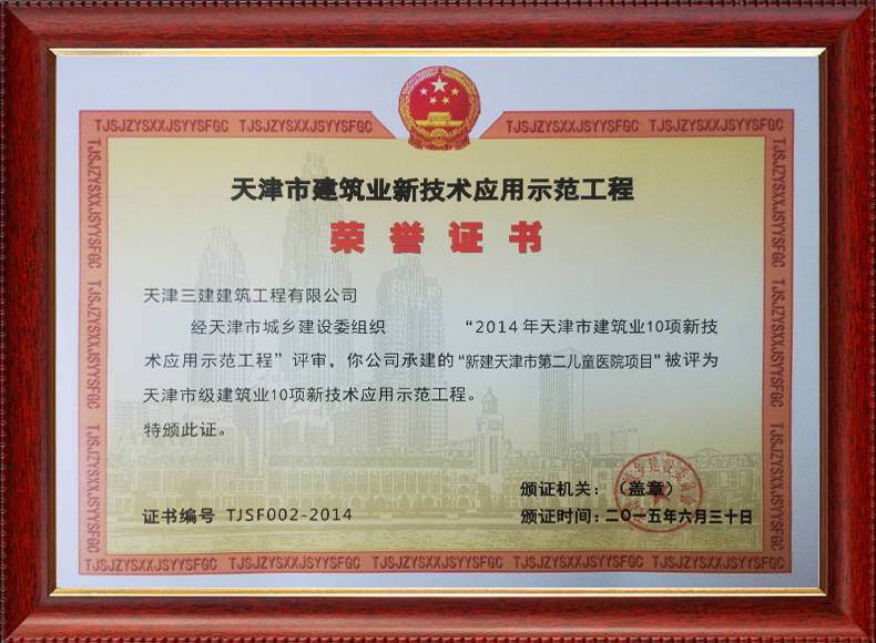 三建公司推廣應(yīng)用住建部十項(xiàng)新技術(shù),創(chuàng)建新技術(shù)應(yīng)用示范工程17項(xiàng),其中國(guó)家級(jí)4項(xiàng),市級(jí)10項(xiàng);創(chuàng)建綠色施工示范工程3項(xiàng),住建部綠色施工科技示范工程1項(xiàng),對(duì)指導(dǎo)工程建設(shè)、提高工程質(zhì)量安全和施工管理水平發(fā)揮了重要作用。